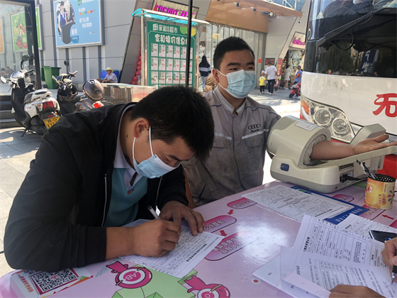 家在西安的劉盼與妻子分屬兩地工作,每逢節(jié)假日他都會(huì)開車來安康與妻子一起團(tuán)聚,中秋這天照例和妻子出門過二人世界的劉盼在獻(xiàn)血車前停下了腳步?!吧洗卧谖靼搏I(xiàn)血都好幾年前了,今天日子好,我去獻(xiàn)個(gè)血吧?”說完劉盼拉著妻子一起上了獻(xiàn)血車。等待初篩結(jié)果過程中,他一直拉著妻子的手說笑,夫妻倆顯得親密無間。檢驗(yàn)結(jié)果合格后劉盼很爽快地要捐獻(xiàn)400毫升血液。