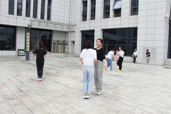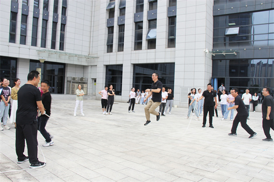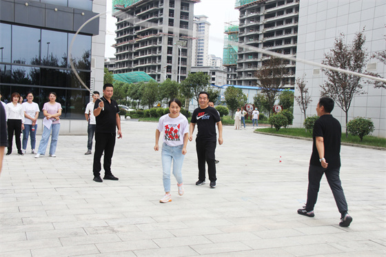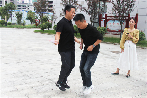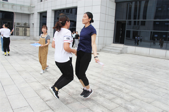 當(dāng)然比賽中還有許多“小插曲”,有的選手鞋帶松了,有的選手繩子扭了,有的選手眼鏡掉了,有的選手被大繩打到疼得哇哇叫,但正是因?yàn)橛辛诉@些小插曲,才讓參與者的笑聲更響,讓這場(chǎng)比賽變得更生動(dòng)有趣,也讓“快樂(lè)工作、幸福生活”這句話有了最真實(shí)的體現(xiàn)。