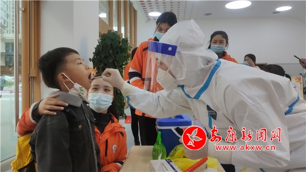 為全力確?!耙咔榉揽亍焙汀皩W(xué)生開學(xué)”工作雙推進(jìn),連日來,安康市高新區(qū)部分學(xué)校相繼開展學(xué)生錯峰檢測報名的方式,保證“防疫”、“開學(xué)”兩不誤。筆者在高新第五幼兒園門口看到,在老師們的指引下家長帶著孩子分組站隊,間隔一米,手持核酸檢測二維碼,耐心等待。醫(yī)護人員則穿戴防護服,認(rèn)真細(xì)致地為學(xué)生們進(jìn)行檢測取樣。截至目前,全校師生已全面完成采樣工作。(毛潤/圖文)?