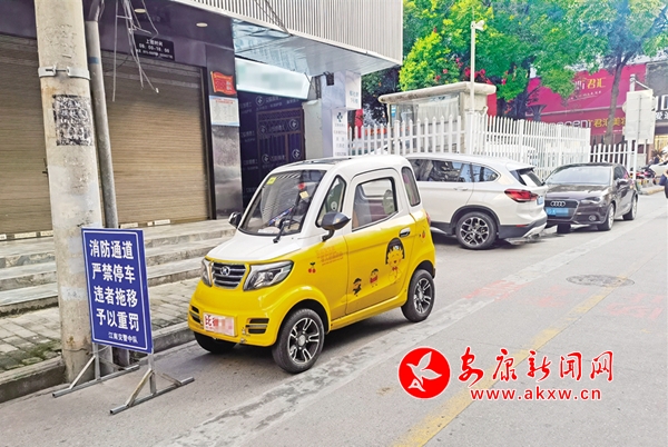 6月27日,安康城區(qū)金州南路報(bào)社巷違規(guī)停車。(記者 張喬 攝)