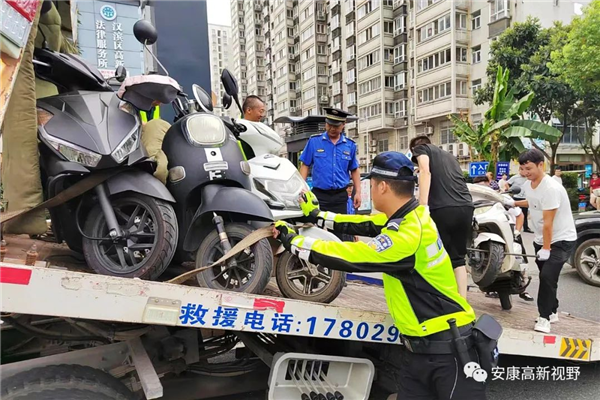 針對車輛亂停亂放等交通秩序管理問題,執(zhí)法人員對花園大道、秦嶺大道、學府路、高新四路等主次干道沿線開展全天候整治,并向沿街商戶下發(fā)摩托車、電動車規(guī)范停車告知書。對占用人行道、消防通道、公交泊位等行為進行拍照取證后強制拖移。同時,向市民群眾發(fā)放文明交通宣傳彩頁,引導大家自覺摒棄交通陋習、遵守交通法律法規(guī),安全文明出行。