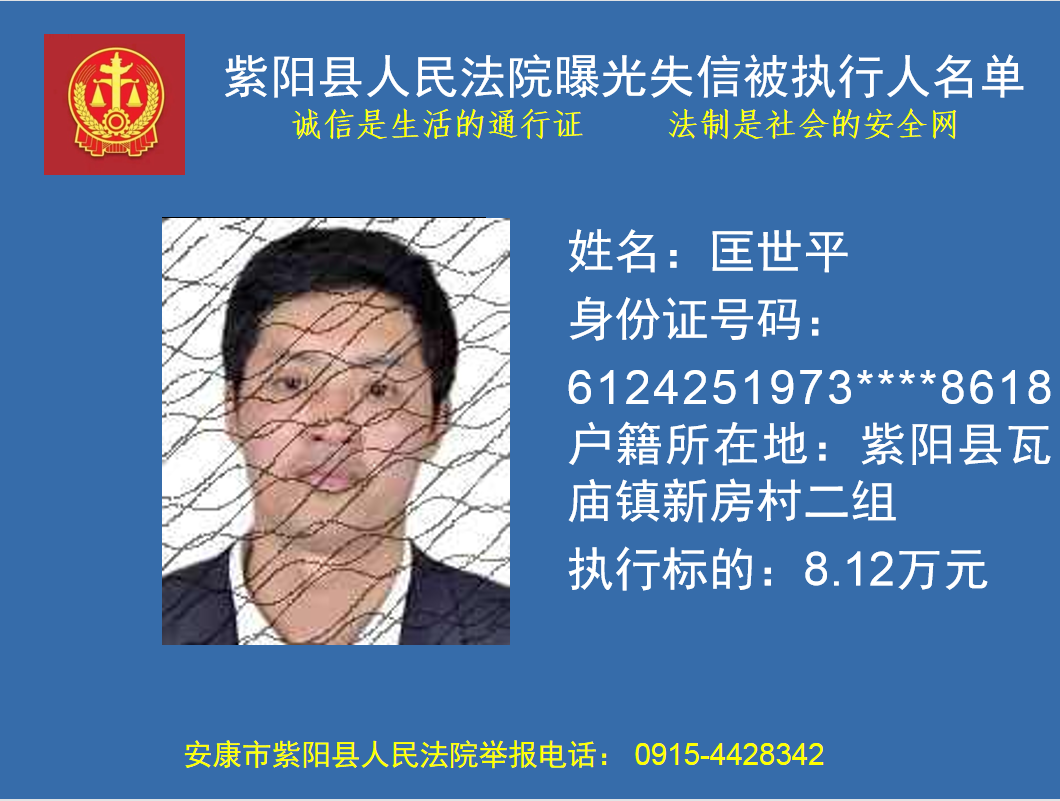 曝光失信 | 紫陽縣人民法院:關(guān)于敦促匡世平履行法定義務(wù)的公告
