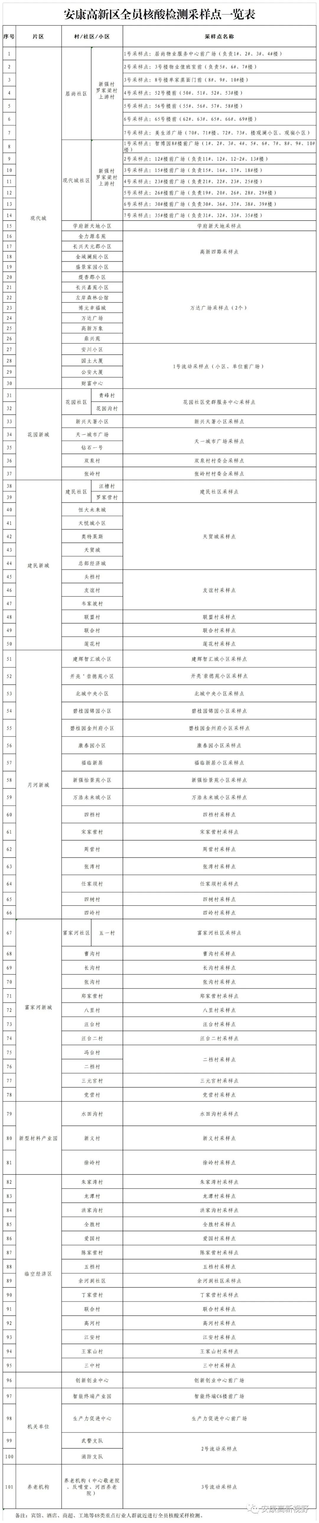 附件:安康高新區(qū)全員核酸檢測采樣點一覽表