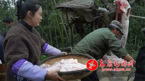 就這樣,抖音號(hào)“菲兒姑娘”出發(fā)啦。她平時(shí)負(fù)責(zé)策劃及出鏡。在2023年2月9日的采訪中,楊菲對(duì)華商報(bào)記者說:“我們的視頻一般是從食材的選取開始拍,比如炒臘腸,每個(gè)產(chǎn)品都是經(jīng)過精挑細(xì)選,也都是選取當(dāng)?shù)剞r(nóng)戶自己養(yǎng)殖的豬,整個(gè)制作過程也都會(huì)拍進(jìn)視頻里,就會(huì)不斷有粉絲朋友詢問購買臘腸、臘肉。”2022年11月份,僅用半個(gè)月時(shí)間該賬號(hào)幫村民賣完了5000余斤豬肉,還有不少客戶已經(jīng)在預(yù)定明年的臘肉,這讓附近的農(nóng)戶信心倍增。