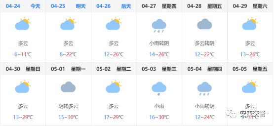 據(jù)氣象部門預(yù)測(cè),“五一”期間,天氣較好。有出行計(jì)劃,需持續(xù)關(guān)注天氣情況,以便做好準(zhǔn)備。