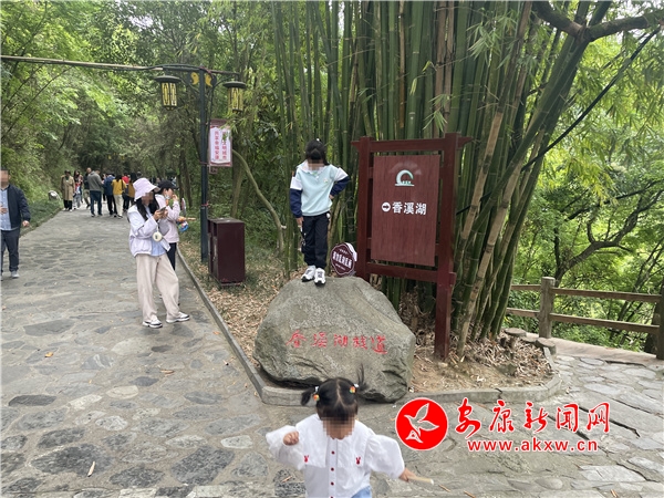 “樓閣云中建,竹木藏山巔。”“五一”期間,風(fēng)景優(yōu)美、距離城區(qū)較近的香溪洞風(fēng)景區(qū)也迎來(lái)了“游客潮”。在眾多自覺(jué)遵守文明出行規(guī)則的游客中,一孩童隨意踩踏在景觀石頭上,和溫馨提示牌上的“愛(ài)護(hù)環(huán)境,文明出行”形成鮮明對(duì)比。