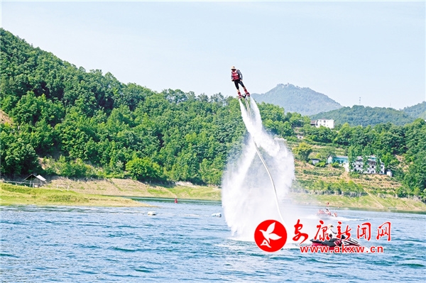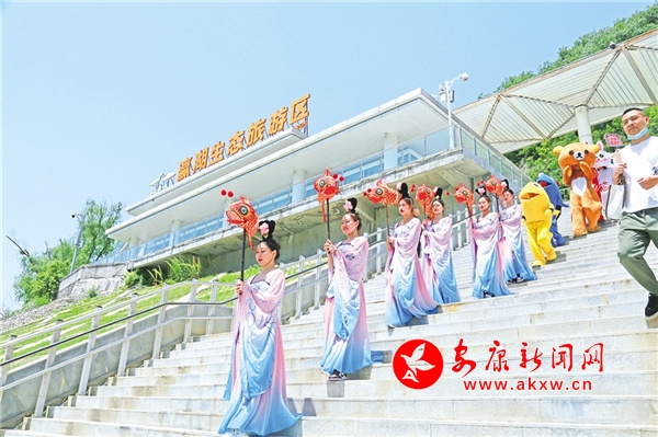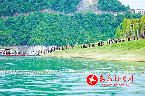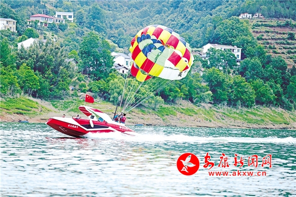 休閑勝地翠屏島,最大的亮點(diǎn)是玉清橋的彩虹瀑布,游客從橋下經(jīng)過,感受“瀛湖之水天上來”的曼妙,這也是瀛湖為游客送上的初夏第一絲清涼。橋頭幸福的天梯、鳥巢,成為排隊(duì)拍照的絕佳點(diǎn)位。運(yùn)動場上,滾鐵環(huán)、射箭、投壺、打籃球,讓游客流連忘返。兒童樂園旁,微型爆米花機(jī)勾起了孩子們參與的興趣,彩繪激發(fā)了孩子們的繪畫熱情。瀛湖水上嘉年華,精彩刺激的水上項(xiàng)目帶給游客酣暢的體驗(yàn),游客紛紛直呼“過癮”!