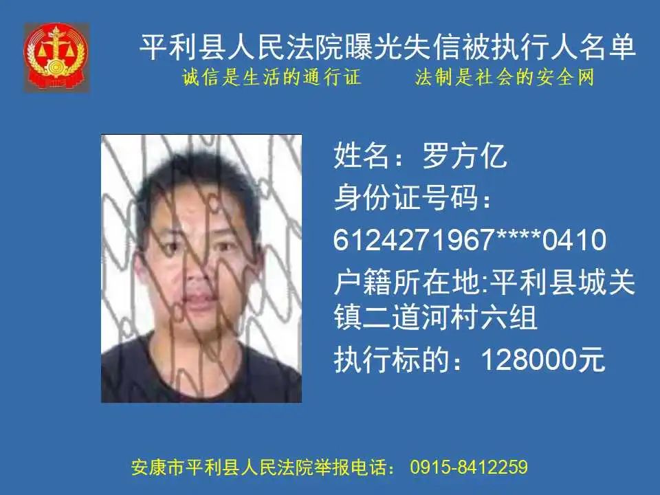 曝光失信 | 平利縣人民法院曝光失信被執(zhí)行人名單(2023年第四期)