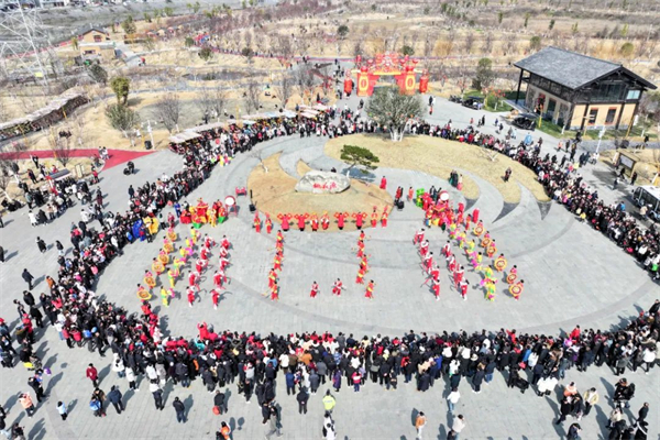 豐收大秧歌、龍騰腰鼓隊(duì)、喜慶蓮響、彩船、花轎大聯(lián)歡、社火、小場(chǎng)子戲等精彩的傳統(tǒng)民俗節(jié)目在桃花源相繼上演。新穎的編排、精彩的表演,令現(xiàn)場(chǎng)游客大飽眼福,叫好聲、喝彩聲此起彼伏。當(dāng)天近25000余名市民游客前往桃花源觀看表演、打卡游園,處處洋溢著“歡歡喜喜過(guò)大年”的節(jié)日氣氛。