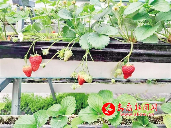 “‘高架草莓’不僅節(jié)約人力,能讓大家冬天也能吃到鮮甜可口的草莓,也不用擔(dān)心降溫、大雪等天氣影響。懸空種植還方便工人以及游客進(jìn)行采摘,許多周邊群眾慕名而來,體驗(yàn)‘開心農(nóng)場’?!眻@區(qū)技術(shù)員曹峰說。