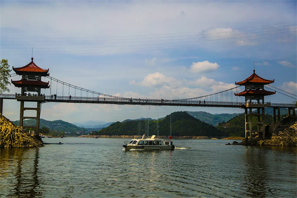 瀛湖翠屏島玉清橋,一條取自瀛湖水的人工瀑布,讓穿梭橋下的游客,徹底感受到了來(lái)自瀛湖的清涼。
