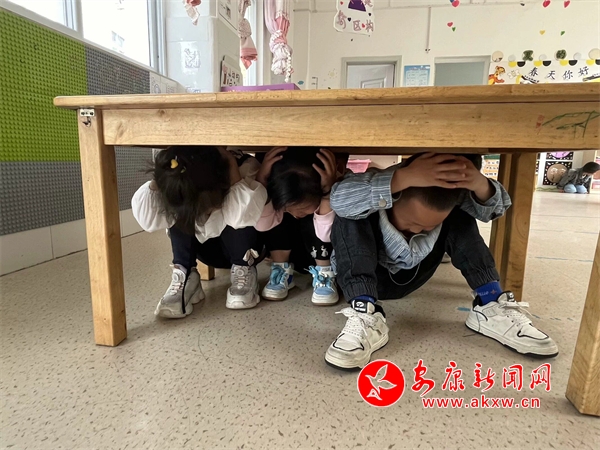 隨著室內(nèi)避震警報響起,防震演練正式開始,老師們迅速啟動《防震疏散演練應(yīng)急預(yù)案》,各班教師立即引導(dǎo)幼兒盡量躲避在室內(nèi)墻根、墻角或床、桌等相對堅硬的家具與三角區(qū)避震空間避險,引導(dǎo)幼兒身體彎曲,降低身體重心,盡最大努力保護(hù)好頭部。逃生疏散中老師不斷提醒幼兒們不要擁擠,手保護(hù)頭部、彎腰,迅速且有序沿著指定疏散路線撤離到安全區(qū)域,同時檢查是否有掉隊(duì)的孩子,確保每位幼兒安全撤離。