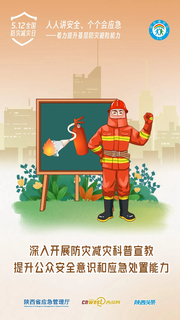 今年5月12日是第16個(gè)全國(guó)防災(zāi)減災(zāi)日,5月11日至17日為防災(zāi)減災(zāi)宣傳周。今年全國(guó)防災(zāi)減災(zāi)日主題為“人人講安全、個(gè)個(gè)會(huì)應(yīng)急——著力提升基層防災(zāi)避險(xiǎn)能力”