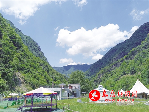 立秋這天,為了避暑,我和友人結(jié)伴,頂著38度的高溫從安康城區(qū)出發(fā),經(jīng)平鎮(zhèn)高速公路,一個(gè)半小時(shí)到達(dá)干洲河上游的五眼泉露營基地,剛好正午12點(diǎn)半,而這里的室外溫度只有22度。打開車門,山風(fēng)一吹,一身暑氣頓時(shí)退去,隨之而來的是山風(fēng)中的樹木清香、山花濃香,以及河風(fēng)吹來的溫潤之感。