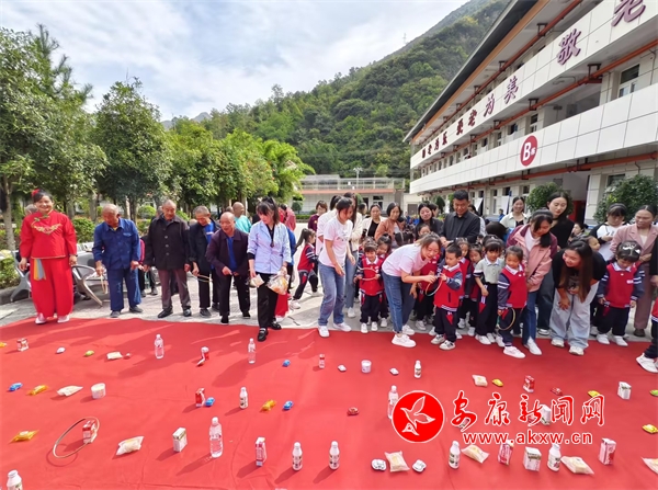 為弘揚(yáng)中華民族尊老敬老的傳統(tǒng)美德,培養(yǎng)幼兒尊老、敬老、助老、愛(ài)老的美好品質(zhì),在重陽(yáng)節(jié)來(lái)臨之際,10月10日,旬陽(yáng)市小河鎮(zhèn)中心幼兒園組織孩子們,走進(jìn)小河區(qū)域敬老院,開(kāi)展“九九重陽(yáng)慶佳節(jié),老幼同樂(lè)享溫暖”實(shí)踐活動(dòng)。活動(dòng)中,孩子們?yōu)闋敔斈棠太I(xiàn)上了精心準(zhǔn)備的歌舞表演,老人們和孩子們一起系上大紅綢,扭起秧歌來(lái),大家一起進(jìn)行了有趣的游戲。孩子們用稚嫩的動(dòng)作,甜美的笑容,給老人們平淡的生活里帶去了歡樂(lè)。(通訊員 劉曉玲 李冬梅)?