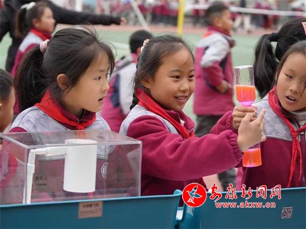 在各個(gè)科學(xué)實(shí)驗(yàn)項(xiàng)目前,同學(xué)們駐足停留,認(rèn)真觀察、反復(fù)操作,沉浸在知識的海洋與科技的奧秘中,操場上不時(shí)傳來陣陣驚嘆聲?!拔易罡信d趣的是機(jī)器人,通過手柄遙控能讓機(jī)器人模仿奔跑跳躍,跟我們打招呼,真是太神奇了,我以后要更加努力地學(xué)習(xí)科學(xué)知識,探索更多的未知領(lǐng)域?!蔽迥昙壱粚W(xué)生激動(dòng)地說。