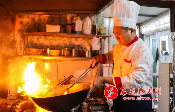 石泉縣長宏居餐飲美食店經(jīng)理杜光發(fā)近兩年連連拿到“陜西烹飪餐飲行業(yè)職業(yè)技能競賽中式烹調(diào)熱菜項(xiàng)目金獎(jiǎng)”及“安康味道”名菜、名小吃大獎(jiǎng),是安康眾多餐飲企業(yè)得獎(jiǎng)最多的單位,慕名去采訪,看到他餐飲店人氣旺盛,前廳熱鬧,后廚火爆,生意做得紅紅火火。探尋其緣由就是:全心做菜民為本,匠心鑄就“好味道”。