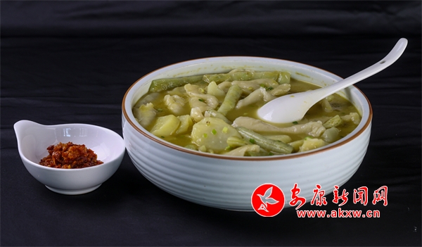 “甜酒火燒饃”,是石泉縣幾代人美食智慧的積累,傳承至今,是深受人們喜愛的小吃。它是采用古老傳統(tǒng)老酵面加甜酒發(fā)面,將老酵面、甜酒加入溫水后,再加入面粉一起攪拌均勻后再揉面。把面團(tuán)揉制光亮后放置幾小時(shí)待其自然發(fā)酵。等到面團(tuán)成發(fā)泡蜂窩狀態(tài),才可以開始將面團(tuán)做成圓形,在用搟面杖搟薄圓形面團(tuán)放入柴火灶鍋中,撒上芝麻,小火炕制一面黃在翻面炕制兩面色澤金黃。吃進(jìn)嘴里有小麥淡淡的清香味,也有甜酒的甜香味,回味無窮。杜光發(fā)制作的這道小吃獲得安康市2024年“安康味道”名小吃。