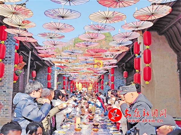 “觀眾朋友們大家好,這里是雙河口古鎮(zhèn),歡迎大家來到庖湯桌宴的活動現(xiàn)場!”冬季庖湯長桌宴的舉辦地,是修葺一新的驛道文化廣場,游客在這里觀看精彩的文藝節(jié)目,品嘗本土特色美食,欣賞茶馬古道歷史浮雕,品味雙河口魅力故事。該項(xiàng)目是2024年7月19日洪災(zāi)后,為修復(fù)損壞的護(hù)坡,依托現(xiàn)有地形條件,盤活原有閑置資源重新改造的文化廣場項(xiàng)目,于當(dāng)年10月1日建成投用。項(xiàng)目建成后,古鎮(zhèn)的景區(qū)框架拉得更寬,文化活動載體變得更大,文化內(nèi)容展示更加生動,配合12月31日建成投用的省級鄉(xiāng)村振興示范鎮(zhèn)展陳室項(xiàng)目,雙河口的歷史文化和人文故事變得可感可知,成為古鎮(zhèn)一處新的地標(biāo)性“打卡地”。