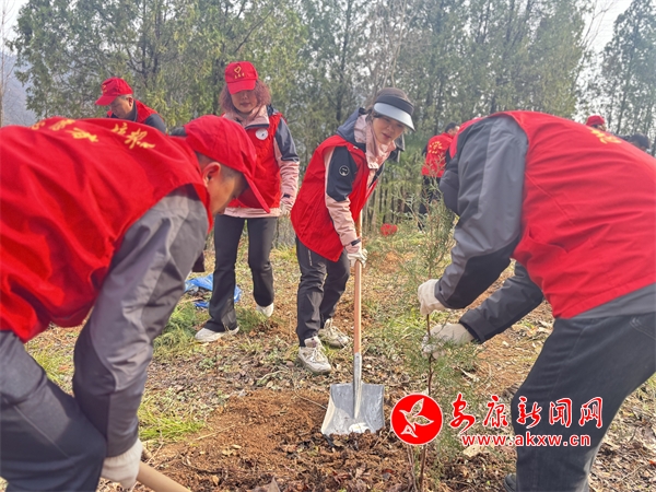 迎著和煦的春風(fēng),參加植樹的黨員志愿者,精神抖擻、干勁十足,兩人一組,或三五成隊,扶正樹苗、揮鍬培土、踏土夯苗、圍堰澆水,每個環(huán)節(jié)、每道工序都做得認真細致,種下樹苗近100株。新栽種的樹苗錯落有致、迎風(fēng)挺立,增添了盎然生機,吐露著無限春意。