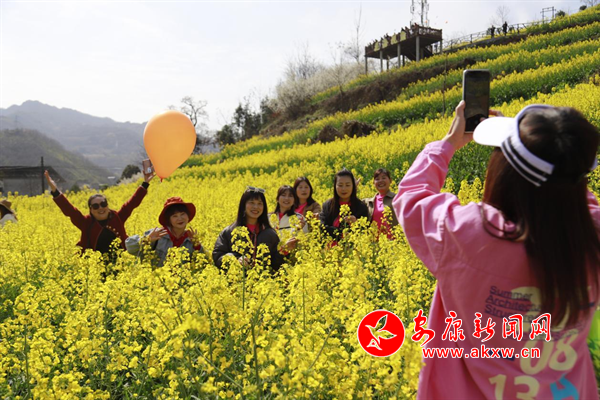 陽春三月,嵐皋縣城關(guān)鎮(zhèn)水田村1000畝繁茂的油菜花海,為大地迅速披上一層金色的盛裝,吸引眾多的游客紛紛前來觀光旅游,分享陽春三月、鳥語花香的鄉(xiāng)間美麗景色。(攝影 廖霖)?