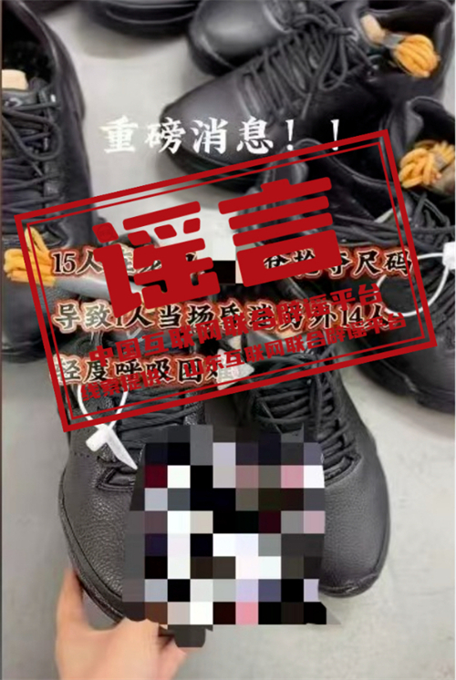 真相:近日,有網(wǎng)民在某平臺上發(fā)布視頻稱:“重磅消息!!15人在龍口某倉庫搶奪尺碼,導致1人當場昏迷,另外14人輕度呼吸困難,天降之禍”,引發(fā)社會關注。山東龍口網(wǎng)信部門巡查發(fā)現(xiàn)該情況后立即聯(lián)合當?shù)毓膊块T啟動調查程序。調查發(fā)現(xiàn),此視頻發(fā)布者系當?shù)仄放七\動折扣店店主劉某。圖中“搶奪尺碼”是指斷碼甩賣的鞋子,有時商家為吸引顧客會搞類似的優(yōu)惠活動。而劉某為博取流量,吸引關注,自行編造并發(fā)布了上述謠言。目前,龍口公安已依法對劉某進行行政處罰。(來源:山東互聯(lián)網(wǎng)聯(lián)合辟謠平臺)
