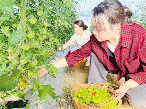 在分揀包裝區(qū),果農們將圣女果按顏色、甜度分級包裝?!扒嗌鸲雀?,適合鮮食;紅色果酸甜適中,主要供應餐飲店。”村民劉大姐介紹,自己以前在外地務工,現(xiàn)在在家門口就能上班,每個月能掙3000多元。在歡樂采摘區(qū),游客們一邊采摘一邊拍照,發(fā)微信朋友圈展示觀光采摘的樂趣。