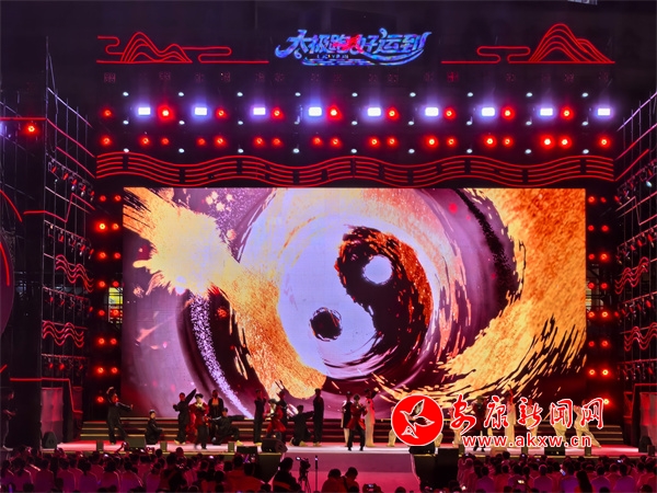 夜幕降臨,開幕式現(xiàn)場美輪美奐、氣勢恢宏。燈光秀、歌舞秀拉開活動帷幕,博得雷鳴般的掌聲。21個鎮(zhèn)代表隊登臺亮相?!盁熁ㄐ恪辫矈Z目,化作多彩光芒,點亮太極城的夜空。伴隨著現(xiàn)場觀眾的激情吶喊,文藝節(jié)目相繼上演,歌伴舞《沖呀!去旬陽》、旬陽好物旬陽非遺推介、舞蹈《舞動長樂紅》、民歌聯(lián)唱《姐不約郎郎不來》、千人復(fù)誦《太極·旬陽賦》、太極秀《太極江湖》、千人齊跳《太極舞》等節(jié)目,充分展示了旬陽的文化底蘊、旅游資源、人文風情,掌聲如潮、歡聲如雷。中國內(nèi)地歌手屠洪剛演唱的歌曲《你》《江山無限》《精忠報國》瞬間將現(xiàn)場氣氛燃爆。