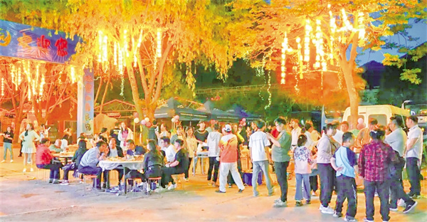 舞臺(tái)旁的燒烤美食區(qū),秘制烤肉與本地山珍食材散發(fā)著誘人香氣,游客們圍坐一起,吃著燒烤、聽(tīng)著音樂(lè)、吹著涼風(fēng),盡情享受假日的愜意。演出間隙的套圈、有獎(jiǎng)問(wèn)答、音樂(lè)接龍、民宿推介等互動(dòng)環(huán)節(jié),更是讓游客熱情高漲,現(xiàn)場(chǎng)歡聲笑語(yǔ)不斷。