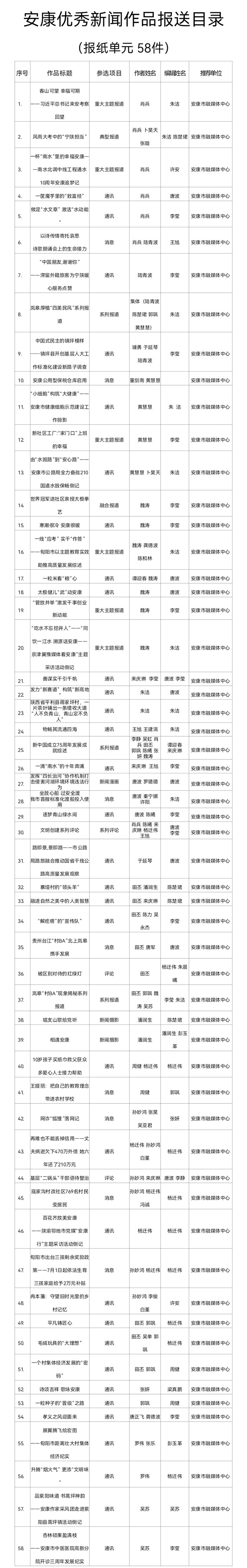 附件:安康優(yōu)秀新聞作品報送目錄(共計(jì)97件)
