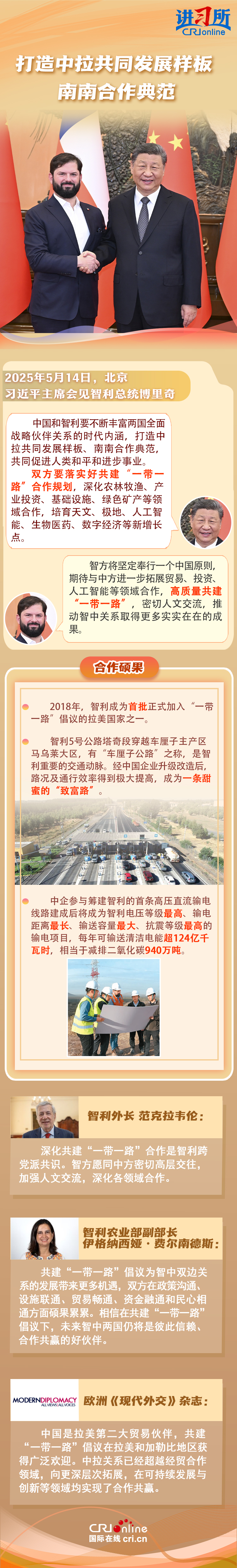 拉方各界人士認(rèn)為,共建“一帶一路”倡議為中拉雙方帶來更多機(jī)遇,應(yīng)持續(xù)通過共建“一帶一路”等方式加強(qiáng)合作、共謀發(fā)展,進(jìn)一步造?!叭蚰戏健眹?。
