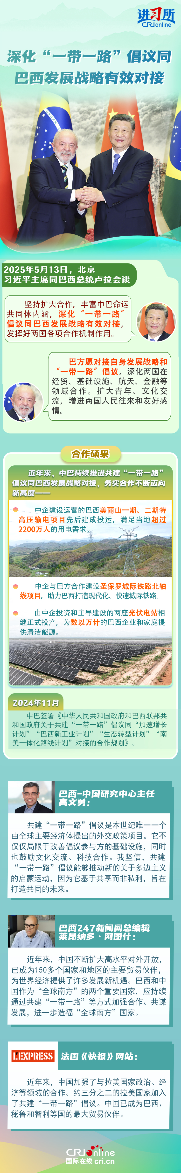習(xí)近平主席在這三場雙邊外事活動中,均提到了共建“一帶一路”倡議:“深化‘一帶一路’倡議同巴西發(fā)展戰(zhàn)略有效對接”“要以哥倫比亞正式加入高質(zhì)量共建‘一帶一路’大家庭為契機(jī),推動兩國合作提質(zhì)升級”“雙方要落實(shí)好共建‘一帶一路’合作規(guī)劃”……10多年來,在習(xí)近平主席親自擘畫和推動下,共建“一帶一路”從中國倡議走向國際實(shí)踐,取得了實(shí)打?qū)?、沉甸甸的成就?/p>