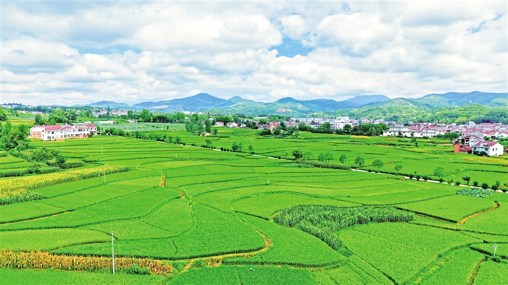 在漢陰縣平梁鎮(zhèn)新河村,連片的綠色稻田與藍(lán)天白云相映成趣,勾勒出一幅生機(jī)盎然的田園畫(huà)卷。王建霞 黃智發(fā) 攝