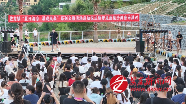 佐龍鎮(zhèn)黨委、政府因勢利導,開發(fā)了蓬萊仙境景區(qū)及馬宗村民宿集群,又把河灣變成了露天公共文化場所。他們舉辦的沙灘音樂節(jié),邀請本地的音樂舞蹈愛好者駐場,鼓勵當?shù)厝罕?、外來游客參與,以參與活動、宣傳活動的數(shù)量打卡積分,兌換文創(chuàng)產(chǎn)品和文化禮品。