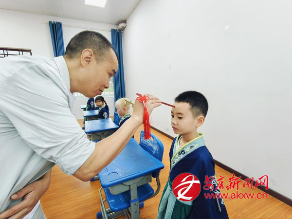 “端身正姿、肅整衣冠、擊鼓明志……”9月12日,鎮(zhèn)坪縣同維希望小學階梯教室內(nèi),2025年一年級新生“開筆禮”如期舉行?,F(xiàn)場通過“正衣冠”“感孝悌”“朱砂啟智”“擊鼓鳴志”“開筆啟智”等環(huán)節(jié),讓同學們深切感受尊長孝親、志存高遠、勤學上進的中國傳統(tǒng)文化的精神內(nèi)涵。(通訊員 王康)