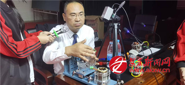 講座的亮點(diǎn)之一是關(guān)于“三相交流鼠籠式異步電動(dòng)機(jī)”的現(xiàn)場(chǎng)實(shí)驗(yàn)展示。嵇教授首先通俗易懂地闡釋了該類型電動(dòng)機(jī)作為現(xiàn)代工業(yè)核心的重要地位及基本原理,隨后現(xiàn)場(chǎng)演示實(shí)驗(yàn)過(guò)程,逐步解析其內(nèi)部結(jié)構(gòu)、旋轉(zhuǎn)磁場(chǎng)的形成機(jī)制,以及“鼠籠”轉(zhuǎn)子實(shí)現(xiàn)電能與機(jī)械能高效轉(zhuǎn)換的原理。抽象難懂的電磁學(xué)知識(shí),在直觀的演示與生動(dòng)的講解中變得清晰可感。嵇教授還引導(dǎo)同學(xué)們思考該項(xiàng)技術(shù)在各行各業(yè)的廣泛應(yīng)用,切身感受科技對(duì)社會(huì)發(fā)展的深遠(yuǎn)影響。這一環(huán)節(jié)有效激發(fā)了同學(xué)們對(duì)工程技術(shù)的興趣與對(duì)科學(xué)原理的探索熱情。