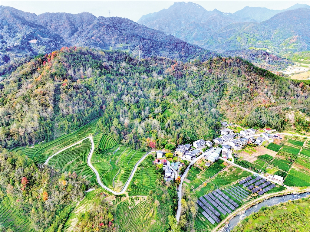 近年來,平利縣廣佛鎮(zhèn)通過山上建茶園、山下安裝光伏板,讓群眾共享綠色收益。吳永杰 攝