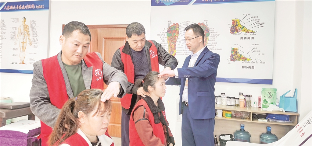 為確保每位參訓學員聽得懂、看得清、學得會,周元富不厭其煩地將每一套動作分解為通俗易懂的語言,配合緩慢而精準的示范,反復(fù)講解,直至所有人掌握要領(lǐng)。對于擁有15年從業(yè)經(jīng)驗的周元富而言,相比于保健按摩技能傳授,參訓學員的心理建設(shè)需要投入更多心力。許多參訓學員初來時思想負擔重,情緒波動大,既擔心學不會技能,更憂慮未來的就業(yè)與收入。面對這些特殊的教學對象,周元富一度感到棘手。經(jīng)過3年的實踐摸索,他將豐富的一線經(jīng)驗與耐心、熱情相結(jié)合,逐步找到溝通與激勵的方法,幫助參訓學員卸下包袱,樹立信心,從容面對學習與未來的職業(yè)之路。
