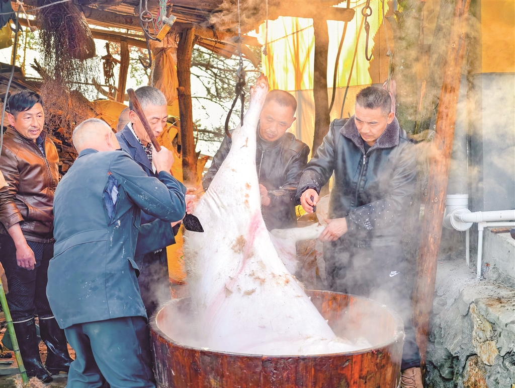 年豬肥碩,庖湯飄香。庖湯宴這一傳統(tǒng)習(xí)俗不僅凝聚著鄰里親情,更映照出當(dāng)代農(nóng)民扎根鄉(xiāng)土、勤勞致富的生動圖景。在鄉(xiāng)村振興政策的支持下,越來越多像代明清一樣的村民,正通過自己的雙手創(chuàng)造更踏實、更紅火、更幸福的生活。