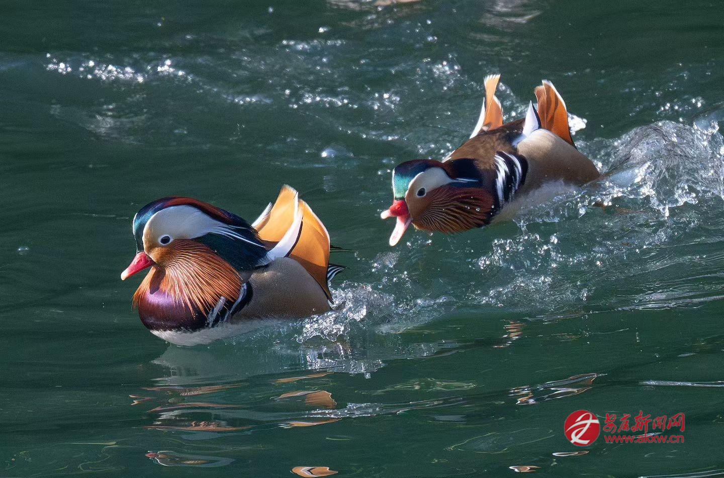 在龍堰村水庫(kù)越冬的鴛鴦 董長(zhǎng)松 攝