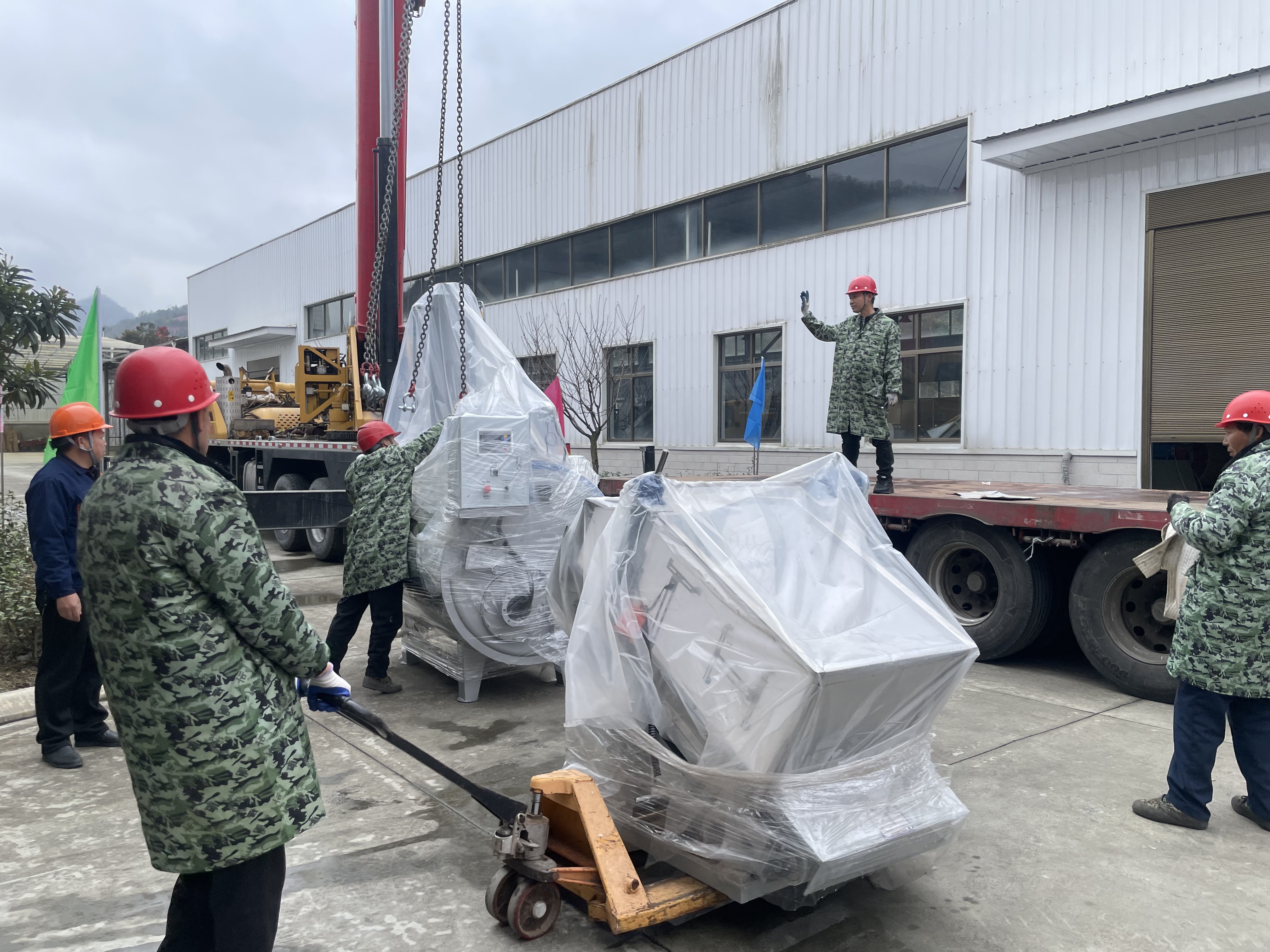走進平利硒地抹茶茶業(yè)有限公司廠區(qū),一派繁忙景象映入眼簾:滿載設備的大型貨車緩緩駛?cè)?,吊車揮臂起吊,工人們協(xié)同搬運,一件件精密設備被精準定位。從入場指引到吊裝作業(yè),再到設備擺放,各環(huán)節(jié)環(huán)環(huán)相扣、井然有序。