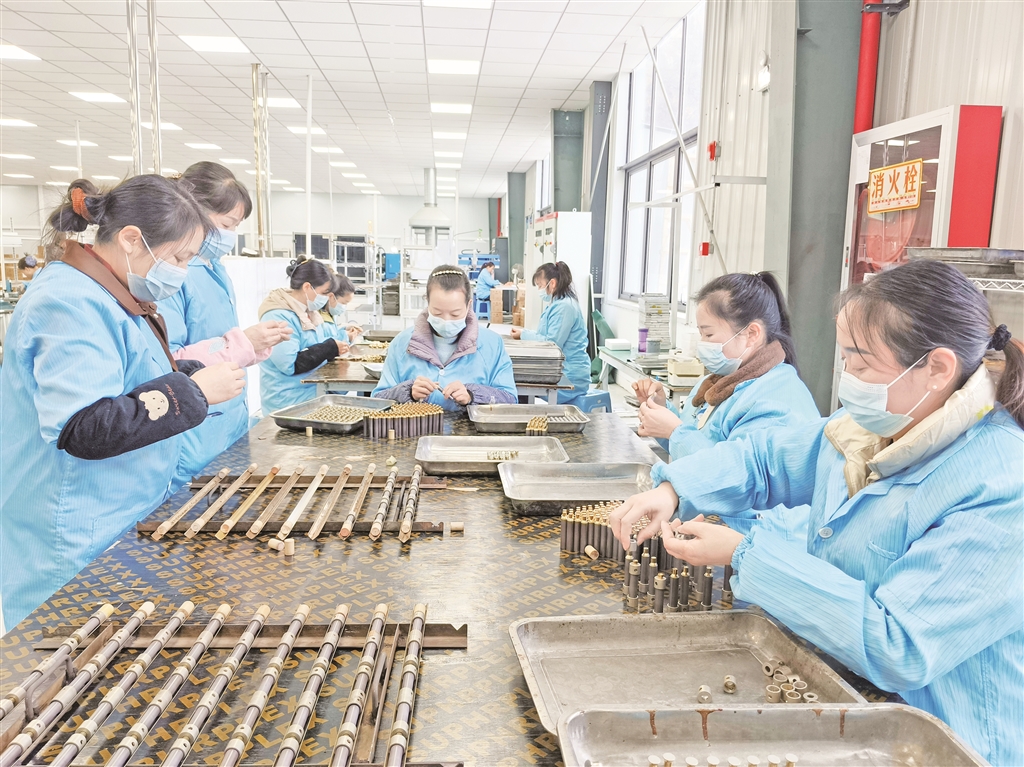 在陜西歐西克電子有限公司生產(chǎn)車間,各條生產(chǎn)線滿負荷運轉(zhuǎn),高壓陶瓷電容器、GPS天線片等產(chǎn)品有序生產(chǎn)。從電子器件成型、燒制、焊接,到絲網(wǎng)印銀、質(zhì)量抽檢,每一道流程都嚴謹規(guī)范、精益求精,以高標(biāo)準(zhǔn)保障產(chǎn)品質(zhì)量?!皬?fù)工復(fù)產(chǎn)后,企業(yè)將趕制訂單作為核心任務(wù),全力保障訂單交付?!必撠?zé)人高維軍信心滿滿地表示,“2026年企業(yè)將聚焦生產(chǎn)設(shè)備更新與產(chǎn)能提升,加大科技創(chuàng)新和設(shè)備投入,爭取實現(xiàn)年產(chǎn)值9000萬元的目標(biāo),帶動更多群眾在家門口就業(yè)增收?!?/p>