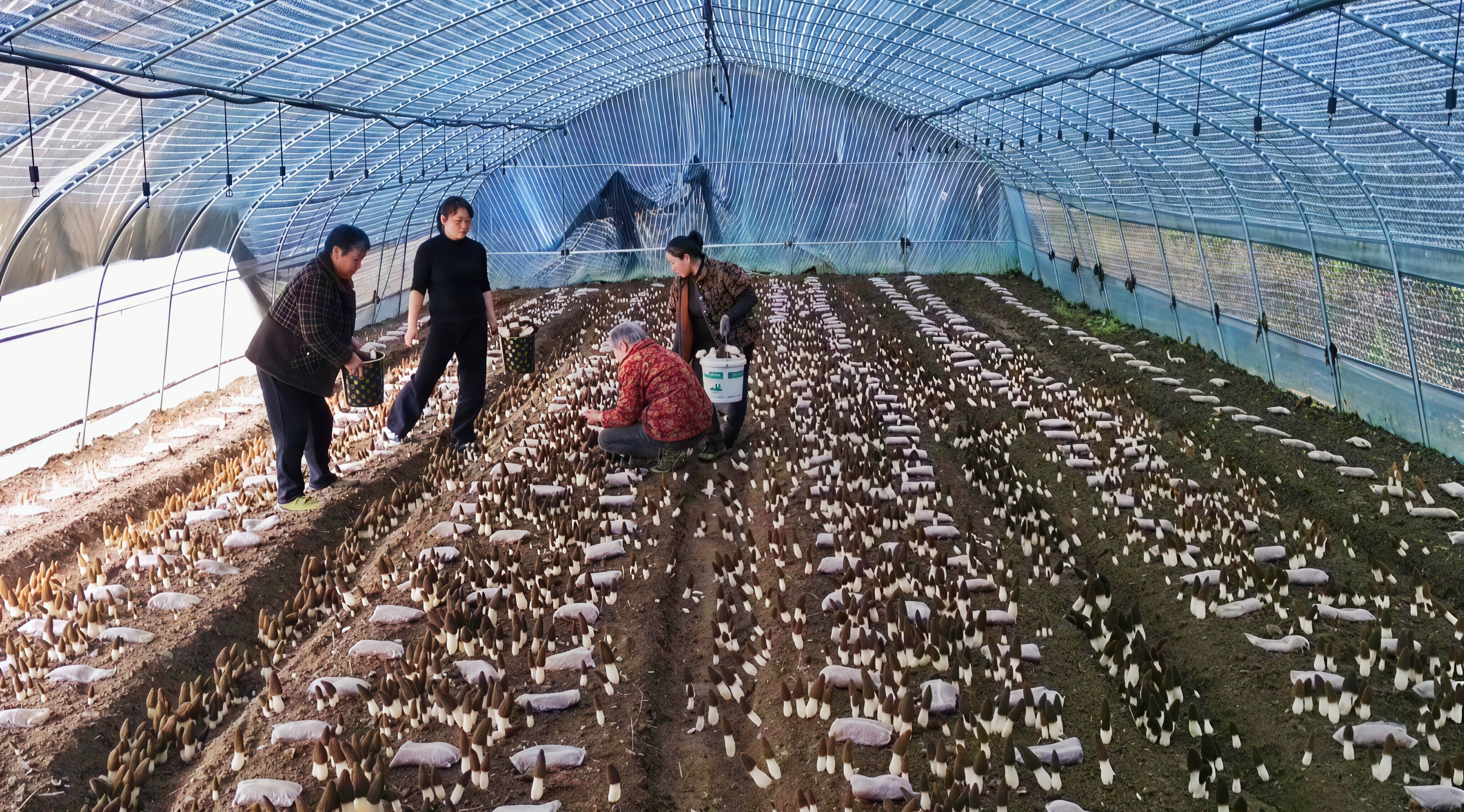 在大雁村羊肚菌種植基地,50畝羊肚菌進(jìn)入集中采收期。整齊排列的大棚內(nèi),一朵朵形態(tài)飽滿的羊肚菌破土而出,褐色菌蓋紋理清晰,長勢喜人。村民們手持小刀,小心翼翼采收著被譽(yù)為“菌中之王”的珍貴食材。羊肚菌采用“冬播春收”模式,生產(chǎn)周期短、經(jīng)濟(jì)效益顯著。按當(dāng)前長勢,預(yù)計(jì)畝產(chǎn)鮮菇可達(dá)400公斤,畝產(chǎn)值超3萬元,真正實(shí)現(xiàn)“春收”變“增收”。