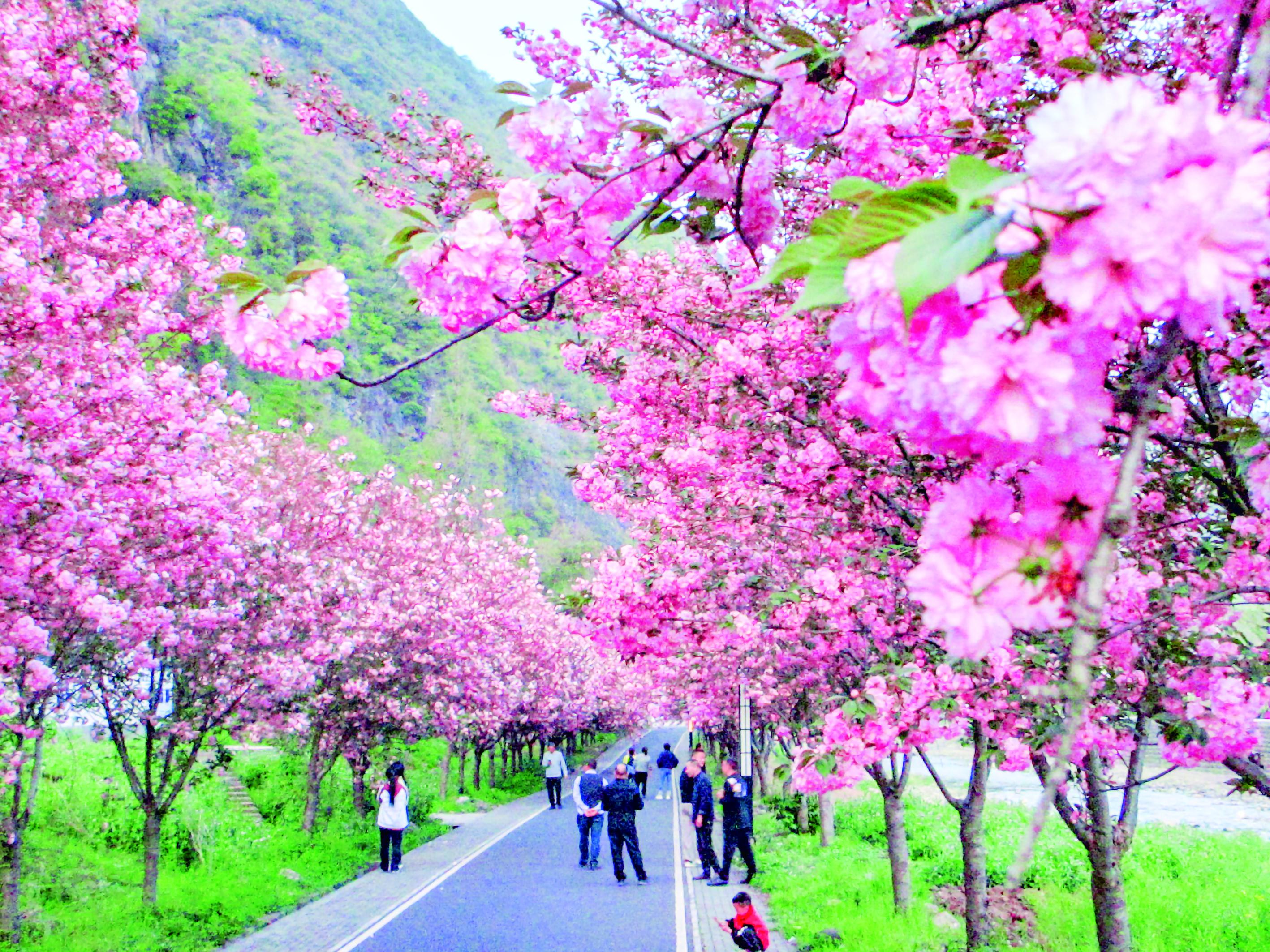 4月4日,平利縣城關(guān)鎮(zhèn)金華村的櫻花進(jìn)入盛花期,不少游客專程前來(lái)賞花拍照。 劉應(yīng)珊 攝
